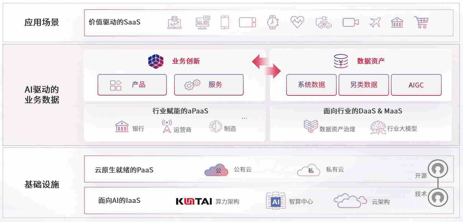 数字时代,,,围绕企业数字化转型的关键要素,,,,EZPAY钱包数码开创性的提出数云融合战略和技术体系框架,,,,着力在云原生、、数字原生、、AI原生和信创产业上架构产品和服务能力,,,为处在不同数字化转型阶段的快消零售、、、汽车、、金融、、医疗、、、、政企、、、、教育、、运营商等行业客户提供泛在的敏捷IT能力和融合的数据驱动能力,,,,构建跨界融合创新的数字业务场景和新业务模式,,助力企业级客户建立面向未来的核心能力和竞争优势,,,全面推动社会的数字化、、智能化转型升级。。